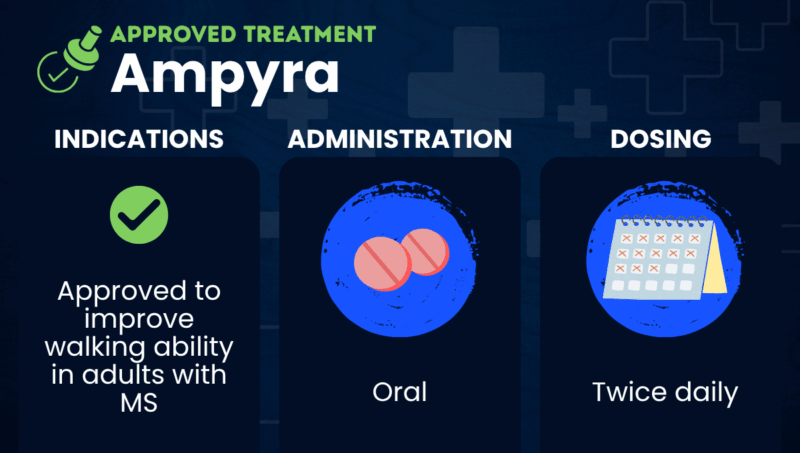 Ampyra was approved by the U.S. Food and Drug Administration in January 2010. It is indicated for easing walking difficulties associated with multiple sclerosis.